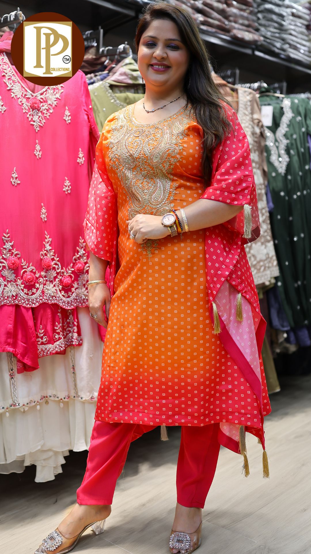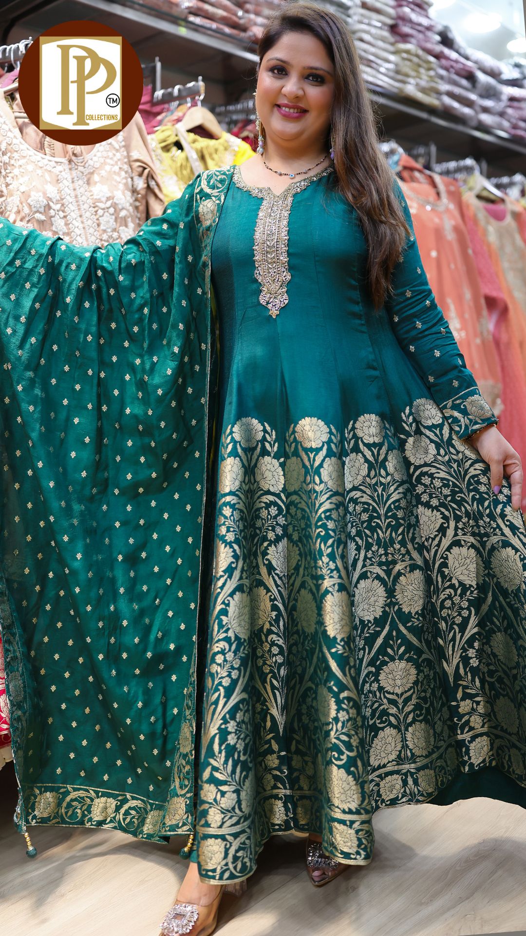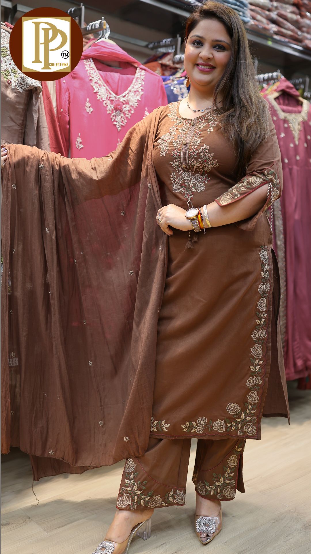 Description : 3pcs divider set Fabric Type : tissue Style : kurta with divider Work Type : all over full heavy handwork in kurta with matching also handworked dupatta & heavy divider
