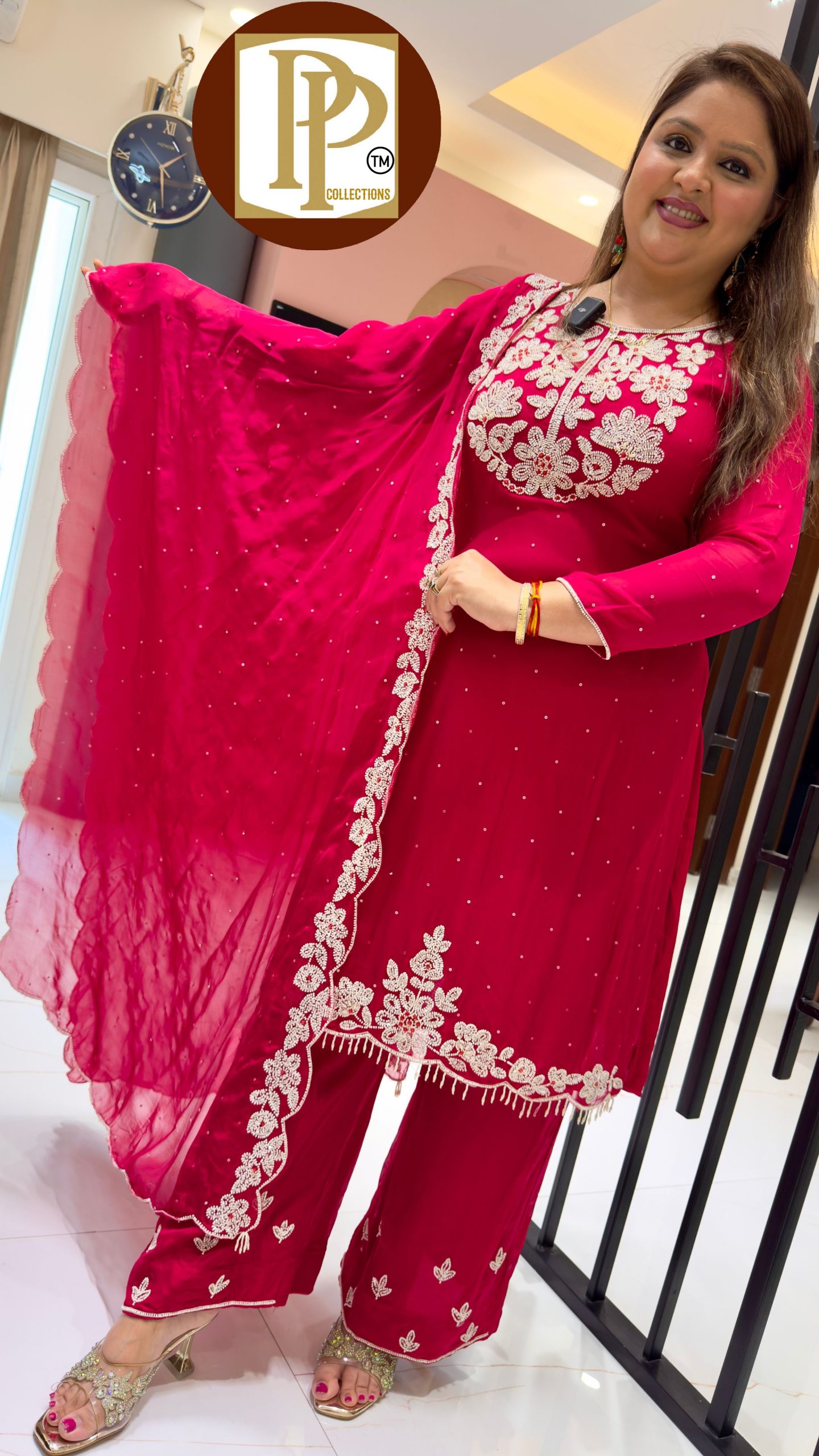 Description : 3piece Skirt Set Fabric Type : Chinnon Style : Crop Top With Skirt Set Work Type : Hand Work With Short Jacket.
