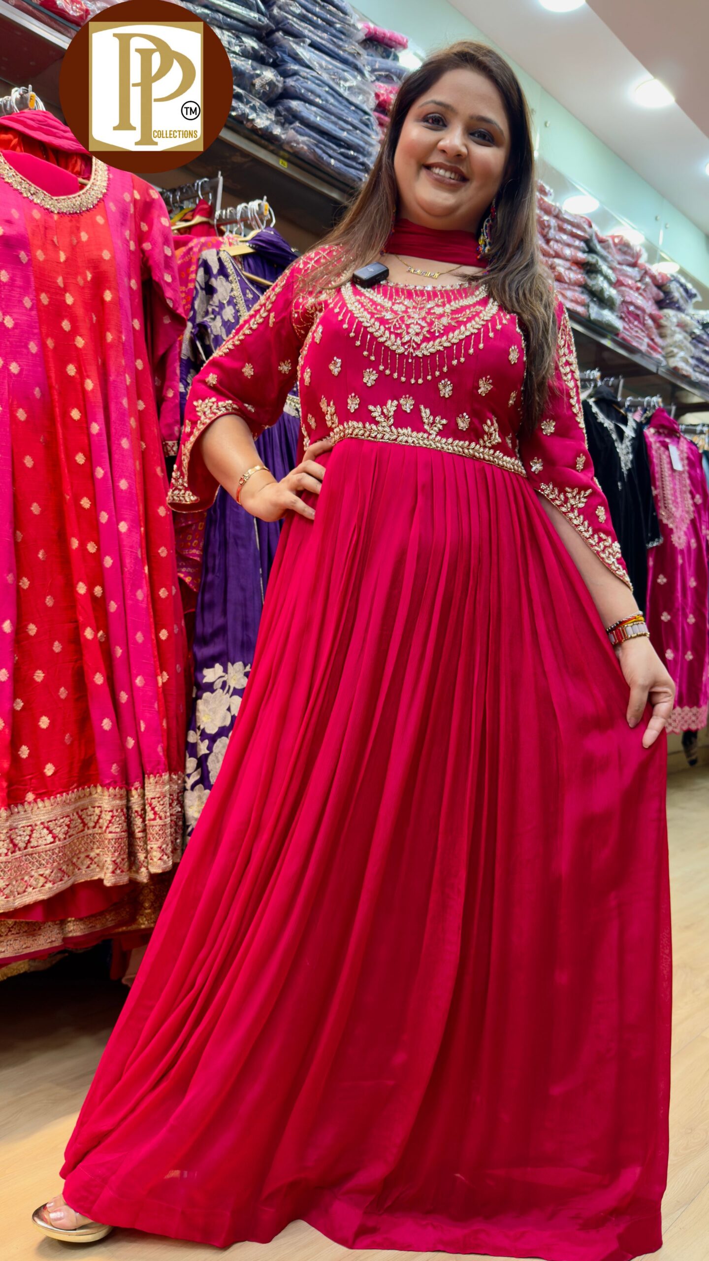 Description : 2 pcs Gown Fabric Type : Chinnon Style : Gown Work Type : Heavy Hand Work With Matching Dupatta.