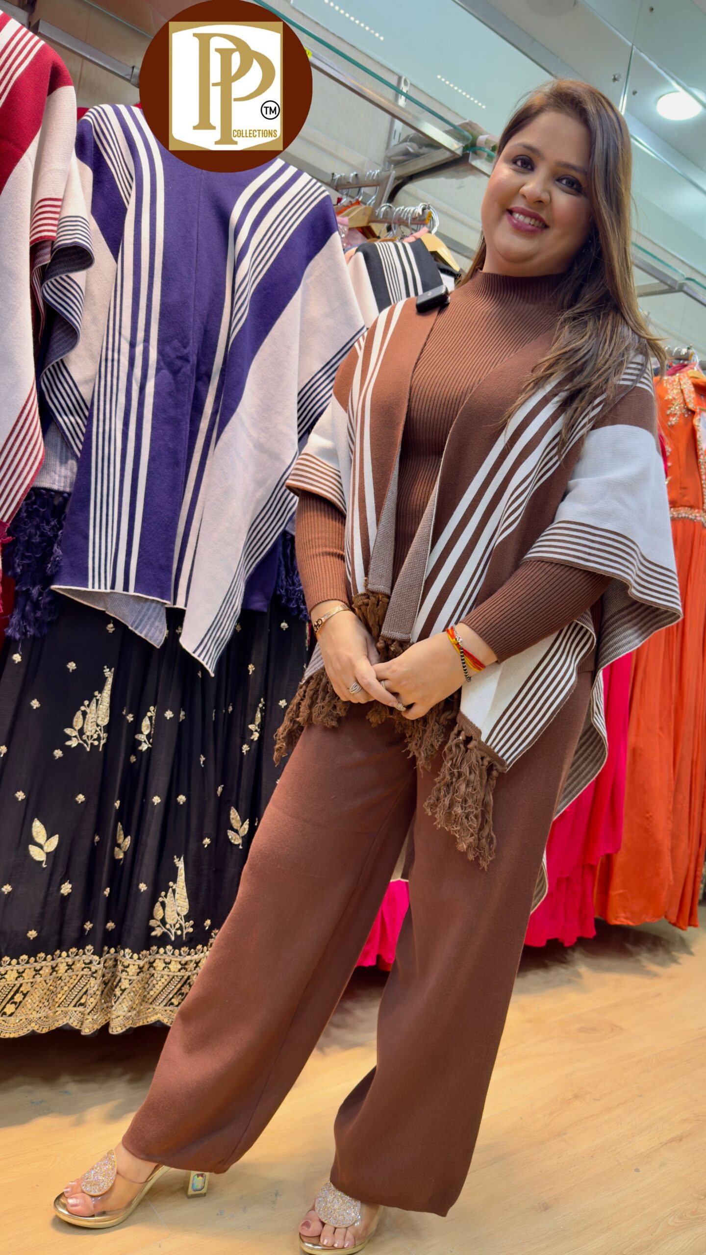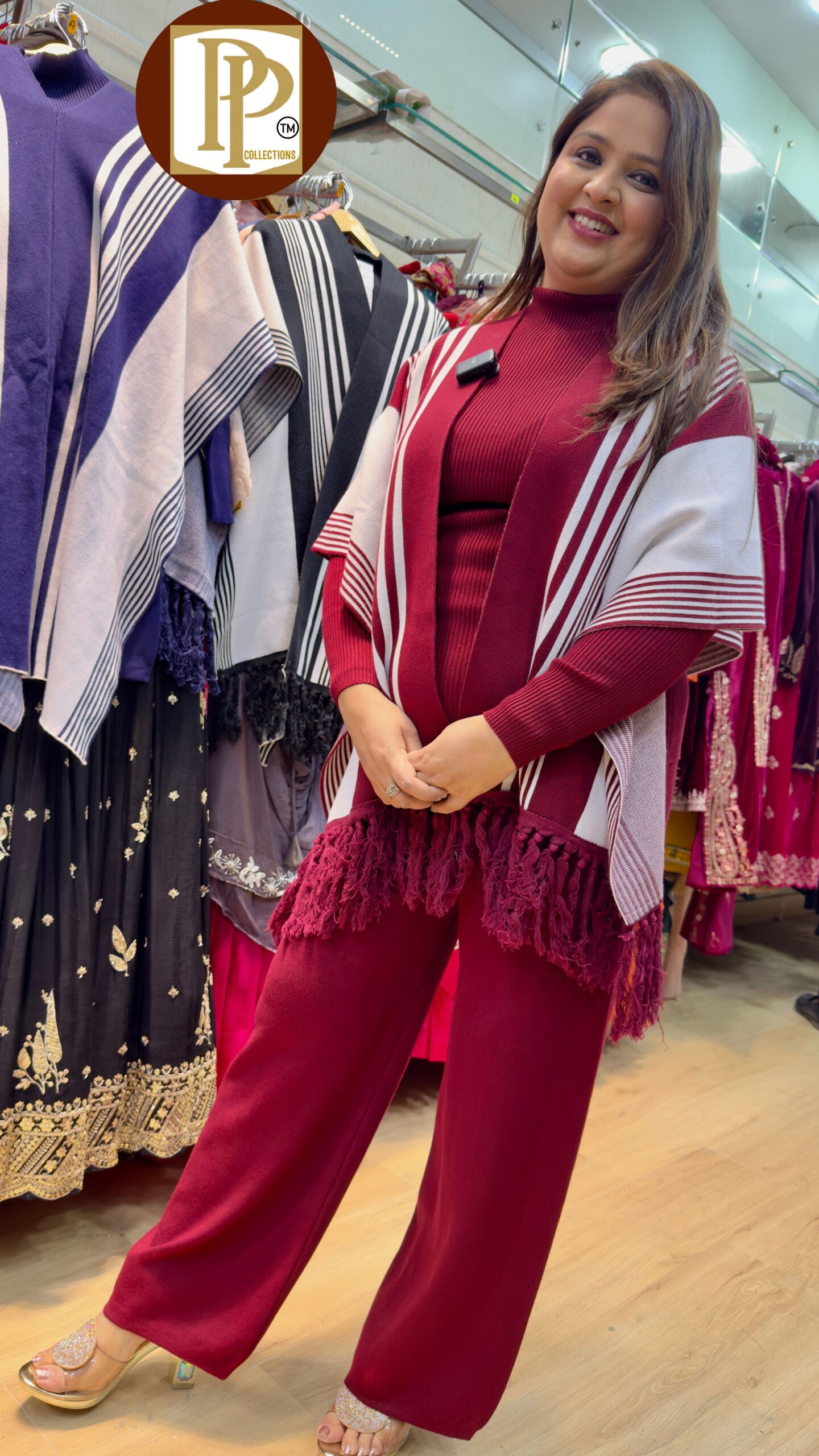 Description : 2 pcs Plazzo Set Fabric Type : wool Style : Co-ord Sets Work Type : Inner & Plazzo With Matching Cape Shrug.