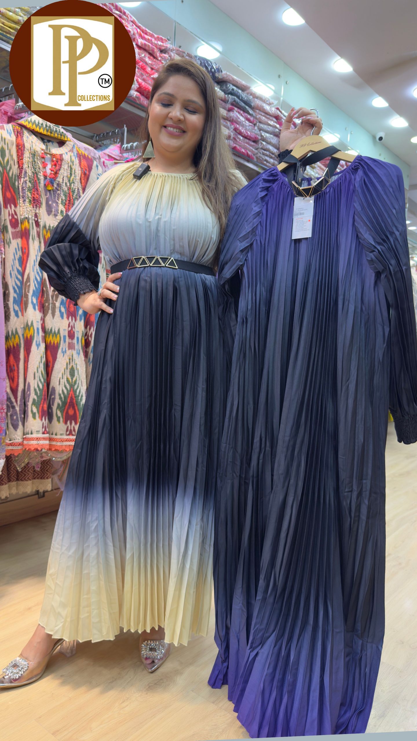 Description : 1piece Dress Set Fabric Type : Korean Imported Style : Dress Work Type : Ombre Print With Blat.