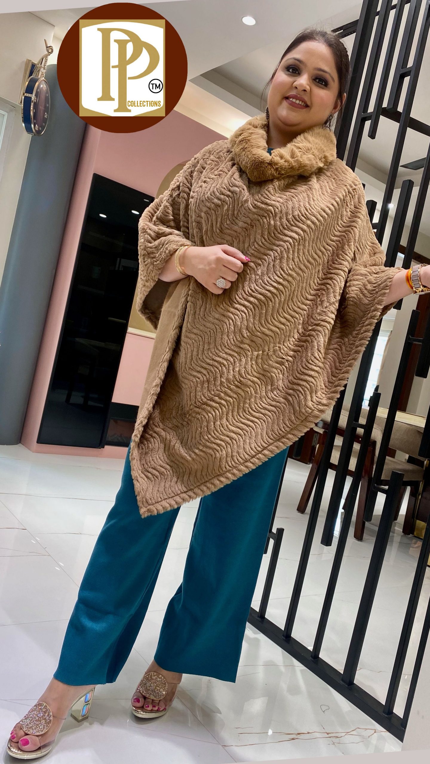 Description : 1piece Poncho Fabric Type : Woollen Style : Poncho Work Type : Furr Style.