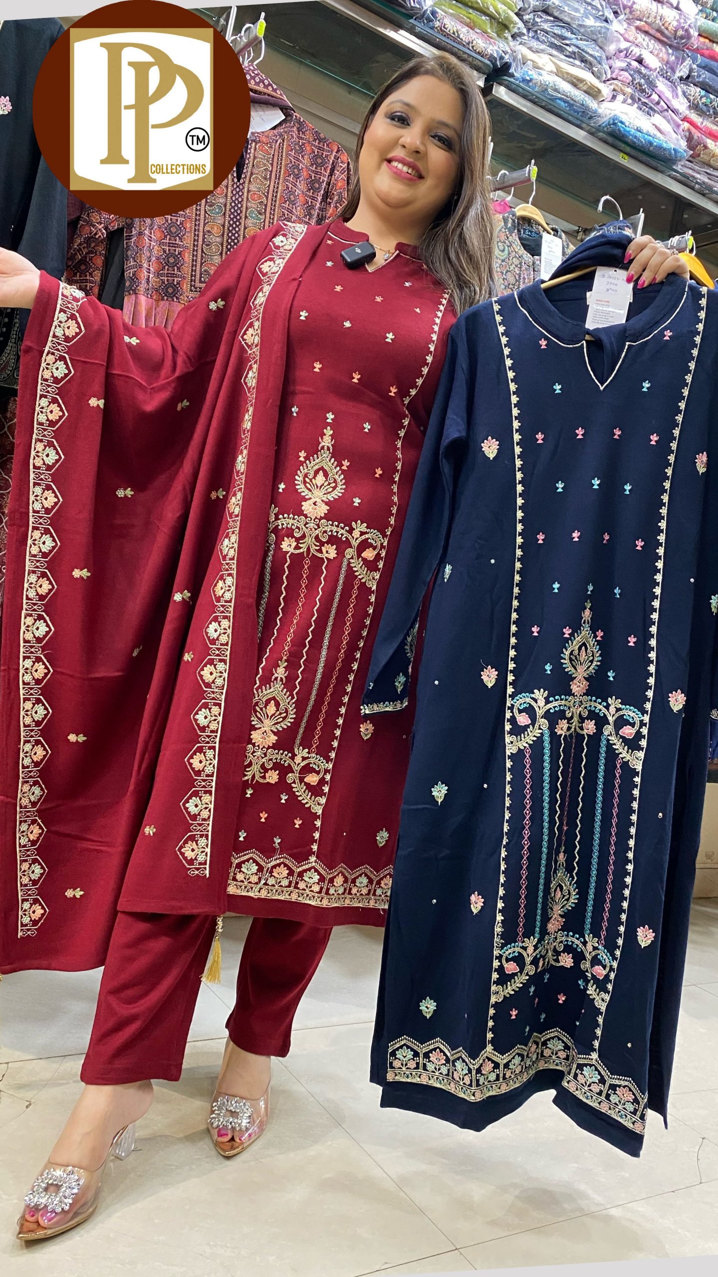 Description : 3piece Pant Set Fabric Type : Woollen Style : Stright Set Work Type : Hand & Thread Work With Matching Shawl.